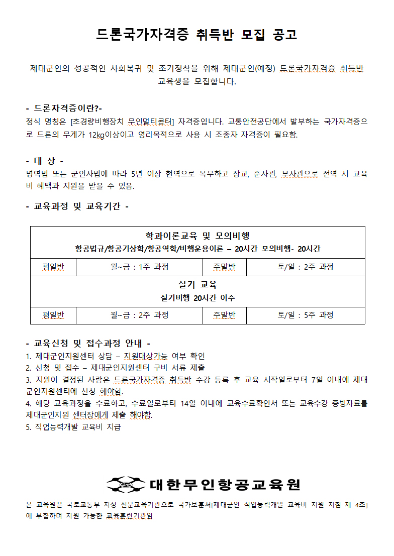 [±ºÀÎÁö¿ø¼¾ÅÍÁö¿ø] Á¦´ë±ºÀÎ µå·Ð±¹°¡ÀÚ°ÝÁõ Ãëµæ¹Ý ¸ðÁý